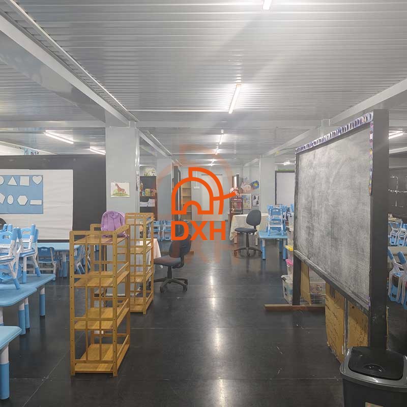 All DXH House modular classroom buildings comply with relevant building codes and educational facility standards. Each prefabricated classroom design incorporates fire safety features, emergency exits, and accessibility requirements.