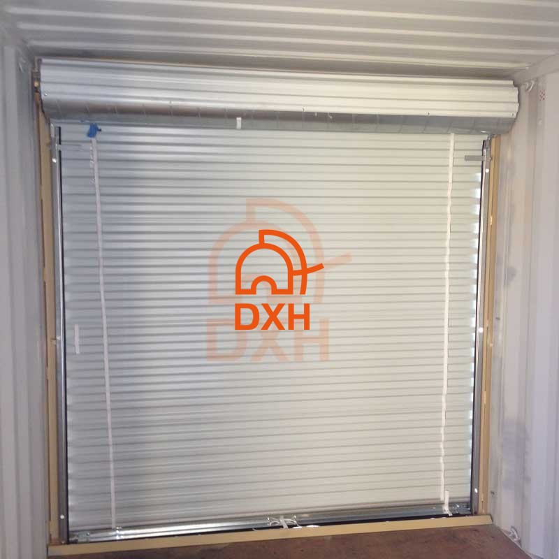 These roll-up door garage containers are constructed from high-quality galvanized steel to resist corrosion, extreme weather, and everyday wear and tear. Optional insulation panels can balance temperature control inside the container, which is especially important for workshops or temperature-sensitive storage areas. The roller shutter garage doors for containers roll up vertically, positioned above the opening when rolled up, unlike traditional swing doors, which require additional headroom. This design maximizes the use of space inside and around the container, making it ideal for homes with limited space, car dealerships, or other large event spaces.
